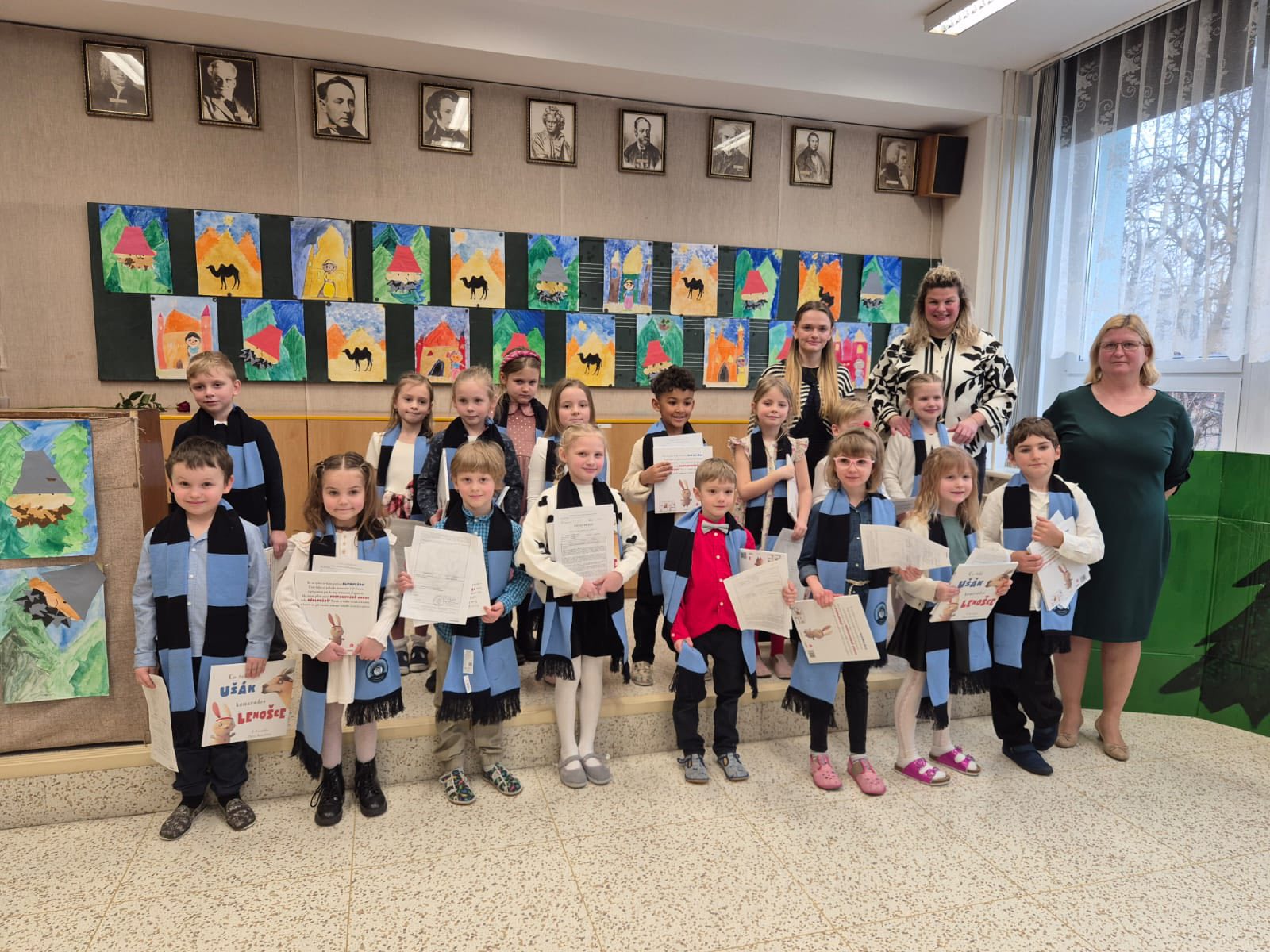 Odnesli jsme si nejen slovní hodnocení, ale také šálu, která nás bude letos ještě dlouho hřát, a naši první knihu k přečtení.