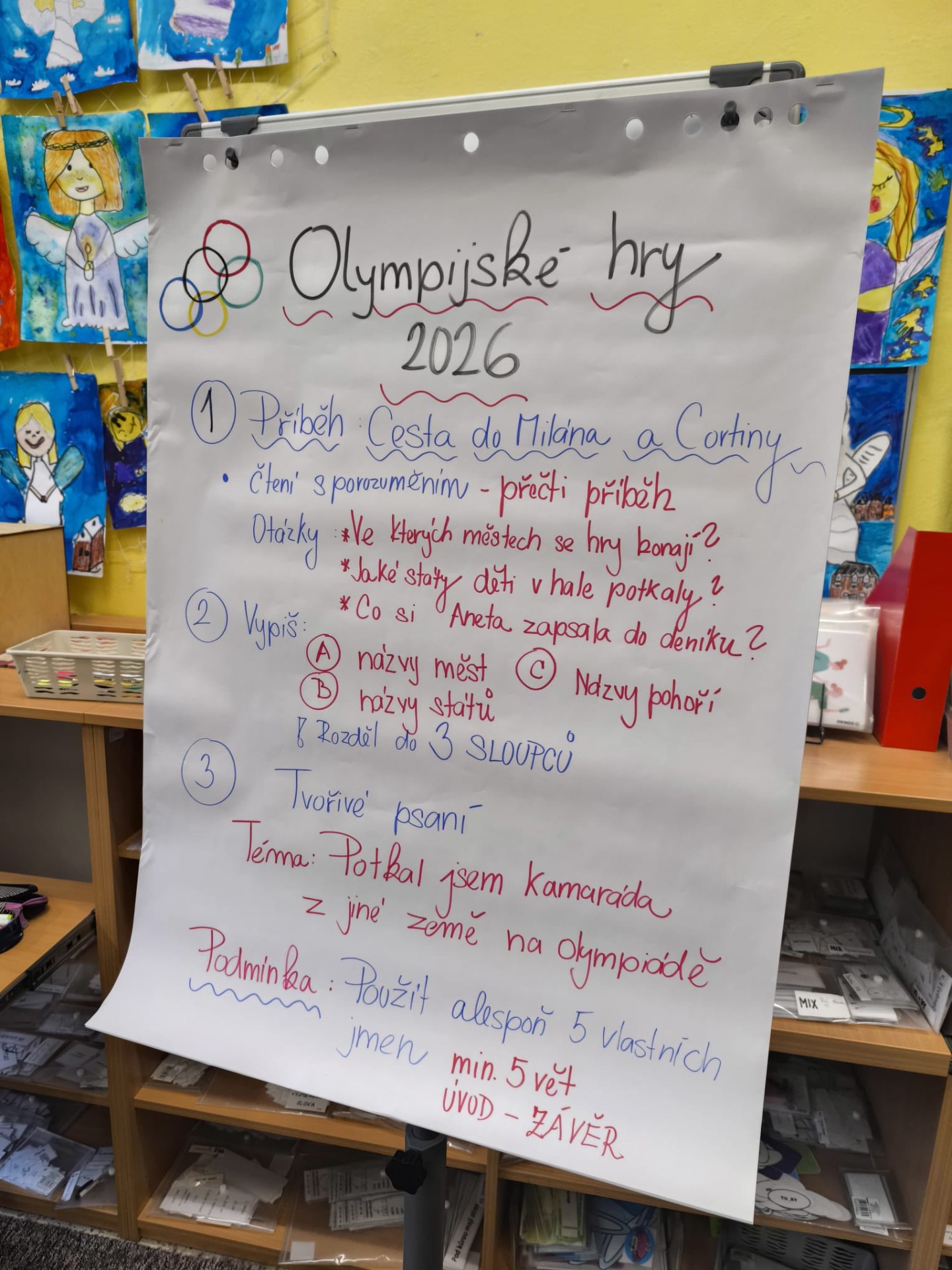 Čekalo nás čtení s porozuměním, tematický diktát a společná skupinová práce, při které děti poznávaly a zpracovávaly všechny zimní olympijské sporty.